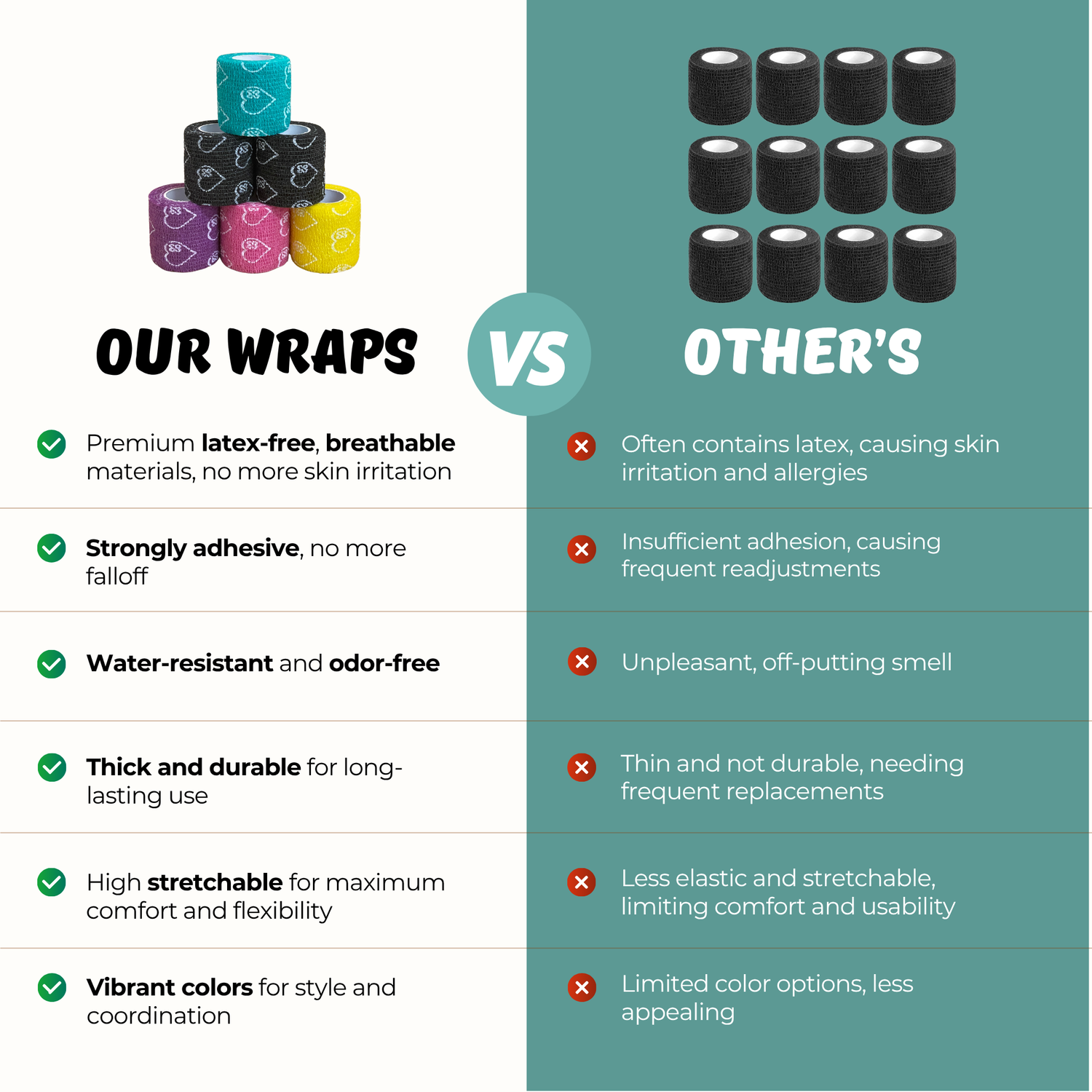 - 100% Latex Free & Hypoallergenic: Crafted from premium non-woven material, our wraps are safe for sensitive skin and eliminate the risk of latex-related allergies and irritations.